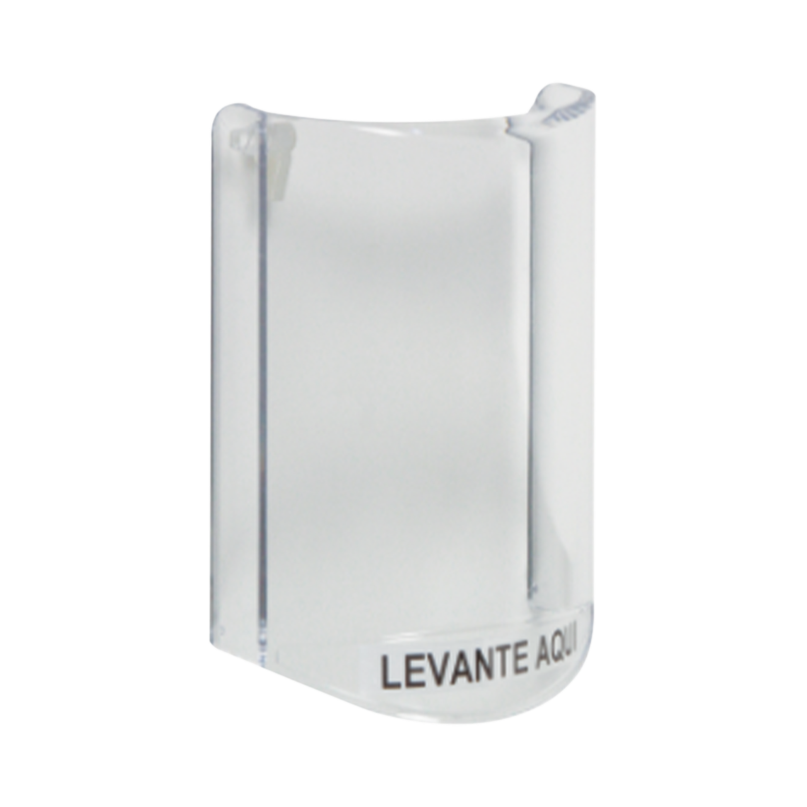 - Protector fabricado específicamente para botones de emergencia STI (Stopper® Station) con texto en español